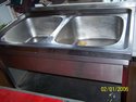 1 Edelstahl Doppelwaschbecken (übereinander) 124x48x58